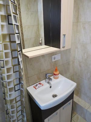 В квартире одна комната, обустроенная мебелью, техникой для комфортного времяпрепровождения.